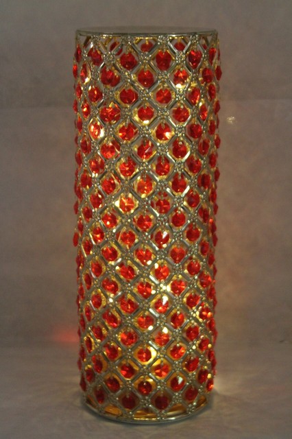 Long nights call for soft light like this illuminated faceted gem glass hurricane.