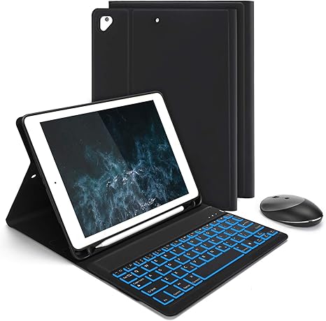 Ipad keyboard case for new ipad air 4 generation 10 9 2020 ipad pro 11 2018 leather pu sewing case with detachable 7 color backlit wireless keyboard for ipad air 4th 2020.
