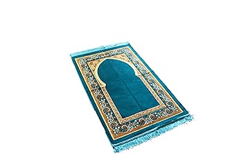 Buy Momin Bazaar Janamaz Prayer Mat Rug Gold New Cyan Simple Gate Flower Border Musallah Online At Low Prices In India Amazon In